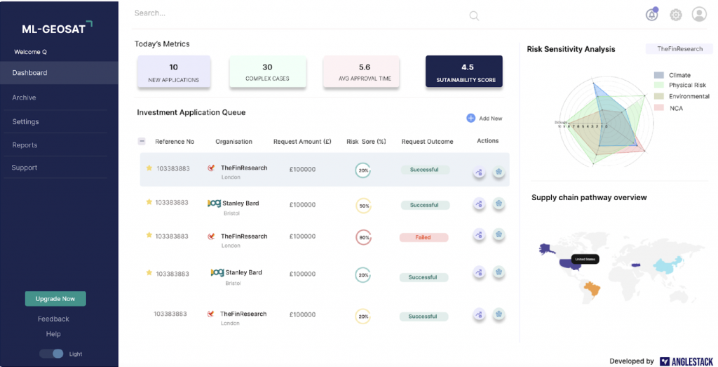 ML-GeoSAT allows underwriters to measure the direct and indirect impacts of physical and transition risks on the entire value chain of a counterparty to determine exposure or vulnerability risks/levels.